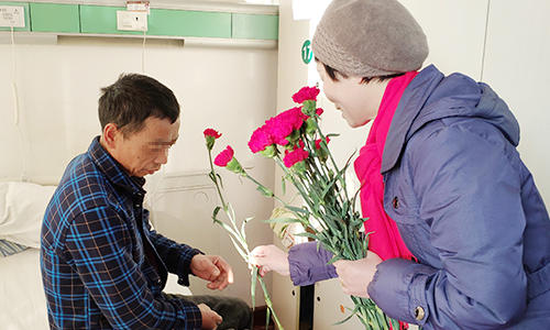 12月31日上午8点上海中大肿瘤医院携手虹口区抗癌俱乐部为患者送去温馨的康乃馨,将象征着温馨与祝福的礼品送到患者手中,并送去节日真诚的祝福,让寒冷的冬天变得温暖。